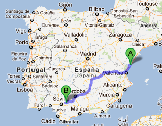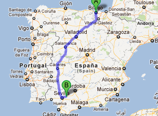 4.Sitúa geográficamente Bilbao y Castellón. Marca los en Google Maps con la dirección de trabajo de cada uno, y guarda el itinerario hasta Carmona en tus mapas.
